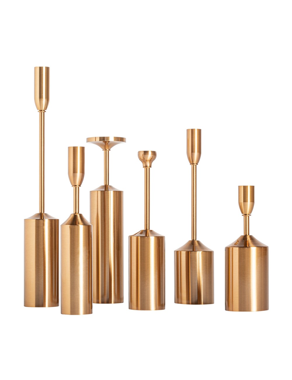 Portavela j/6 byrone, en color oro, de estilo art deco. Fabricado en hierro.