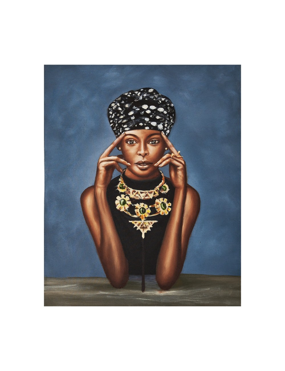 Lienzo jakayla, en color azul artesanal, de estilo oriental. Fabricado en lienzo.