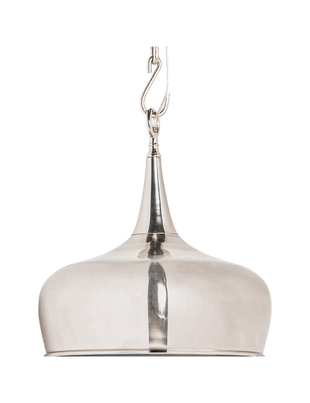 Lámpara de colgar, en color plata metálico, de estilo contemporáneo. Fabricado en hierro, combinado con acero y aluminio.