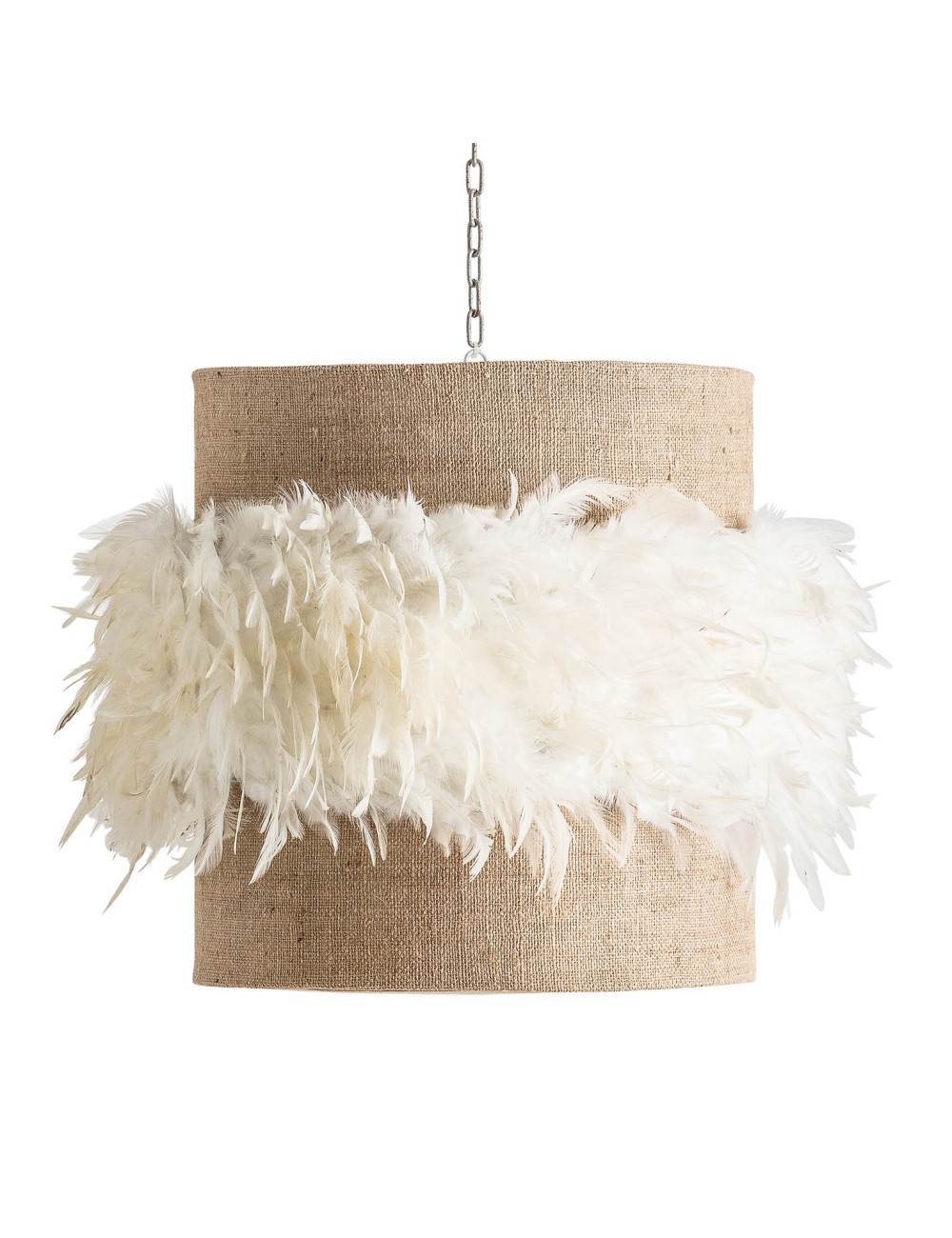 Lámpara de colgar, en color marrón, de estilo étnico. Fabricado en plumas, combinado con yute.