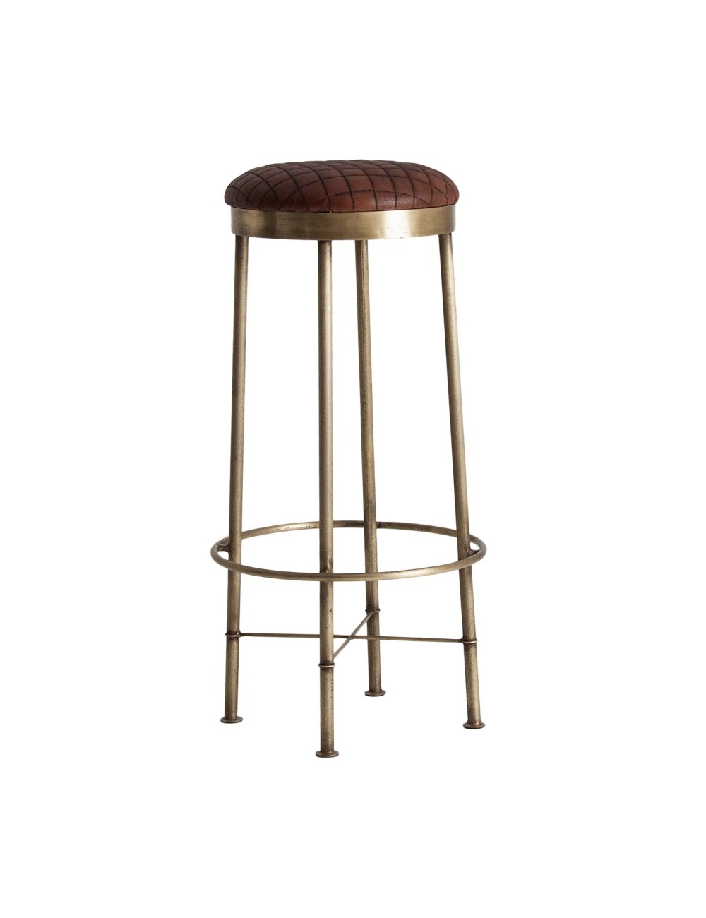 Taburete redondo ottawa, en color marrón/oro viejo, de estilo vintage. Fabricado en hierro, combinado con cuero.