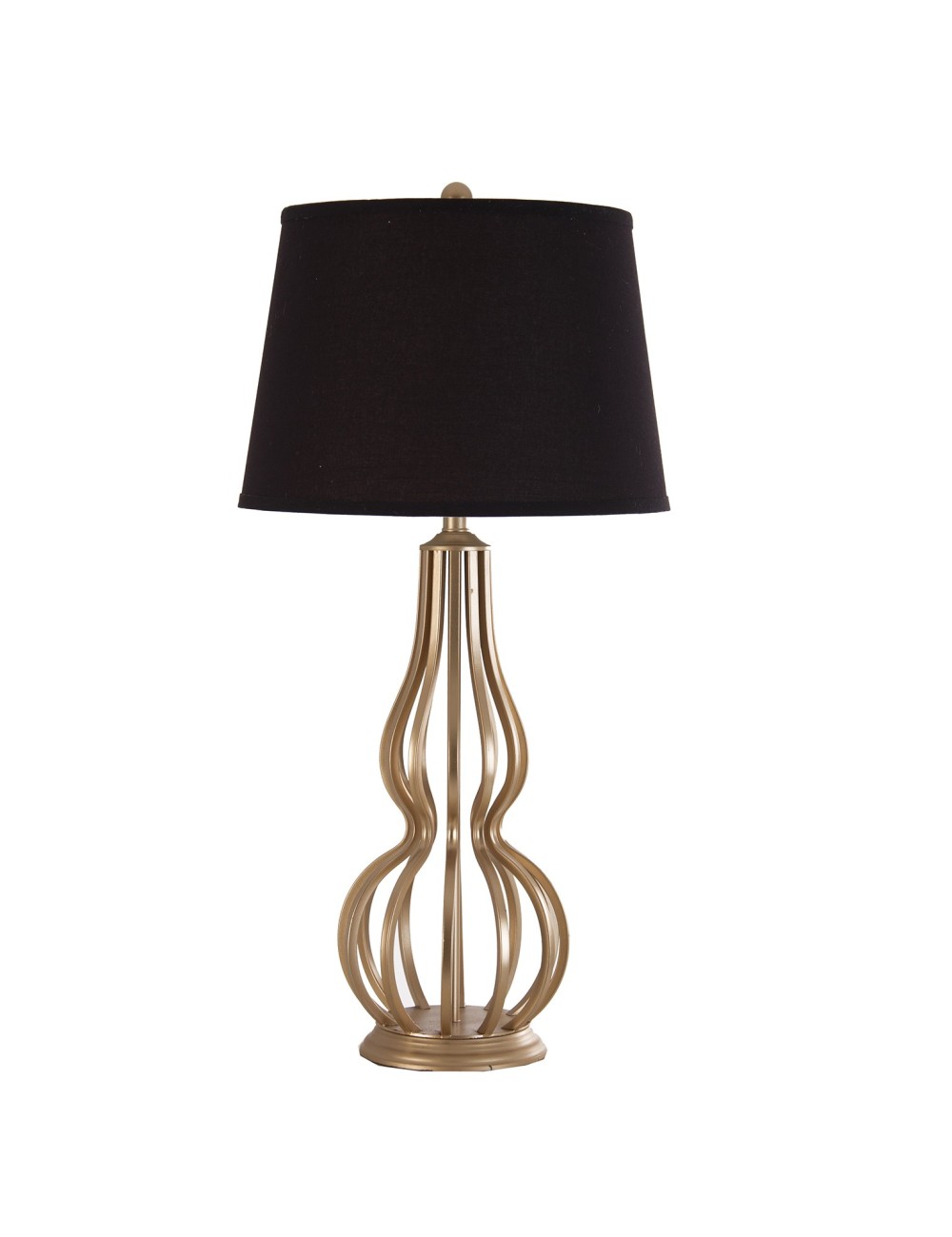 Lámpara de Sobremesa, en color Dorado, de Estilo Art Deco.Fabricado en Hierro, Combinado Con Lino.Producto Desmontable.