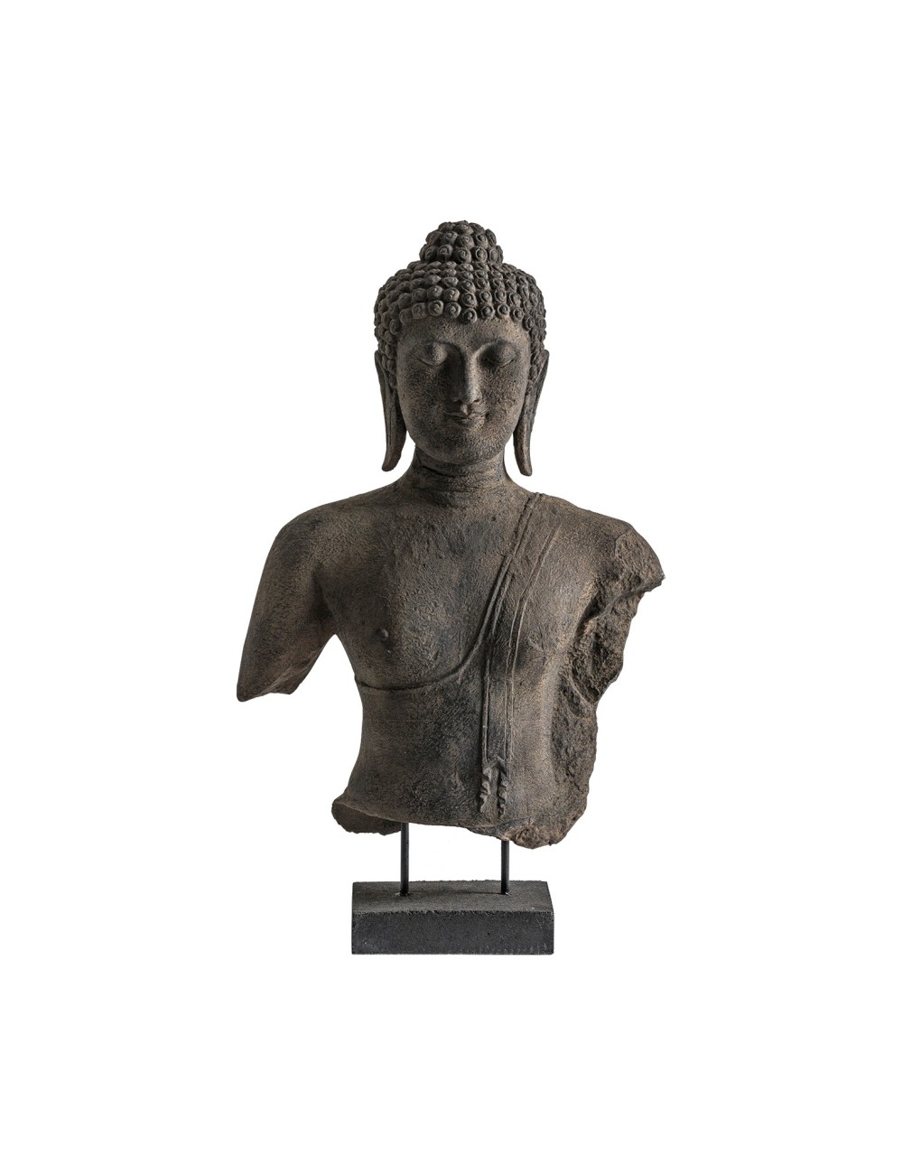 Busto budha, en color gris, de estilo provenzal. Fabricado en cemento.