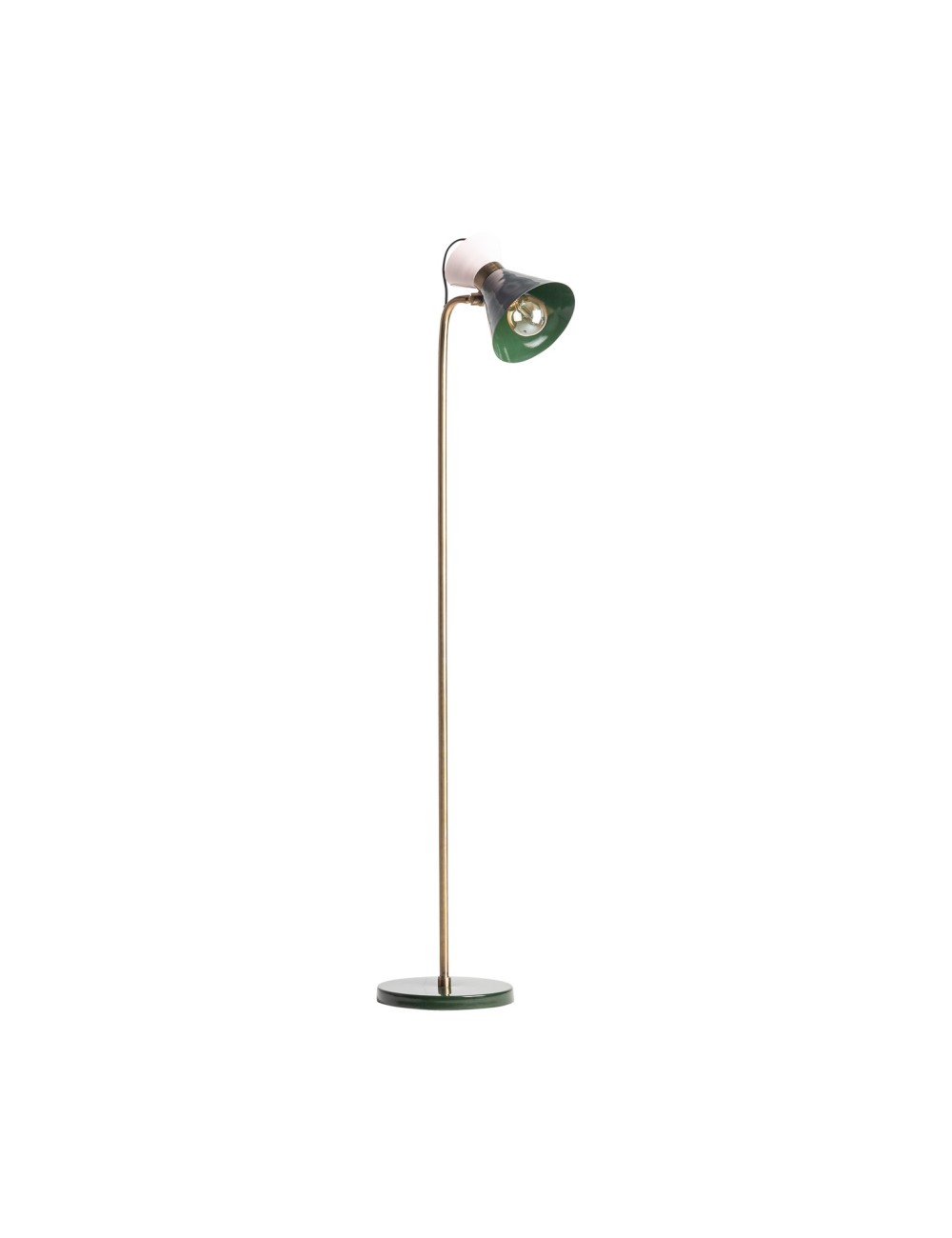Lámpara de pie, en color verde/oro, de estilo art deco. Fabricado en hierro, combinado con latón.
