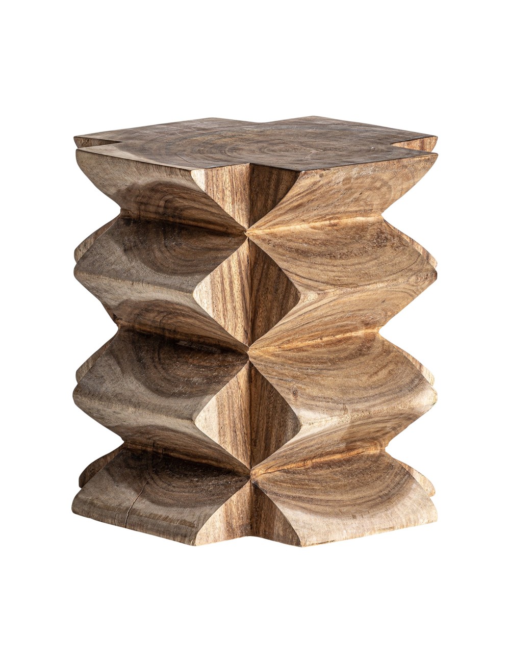 Mesa auxiliar sakalli, en color marrón, de estilo étnico. Fabricado en madera suar.