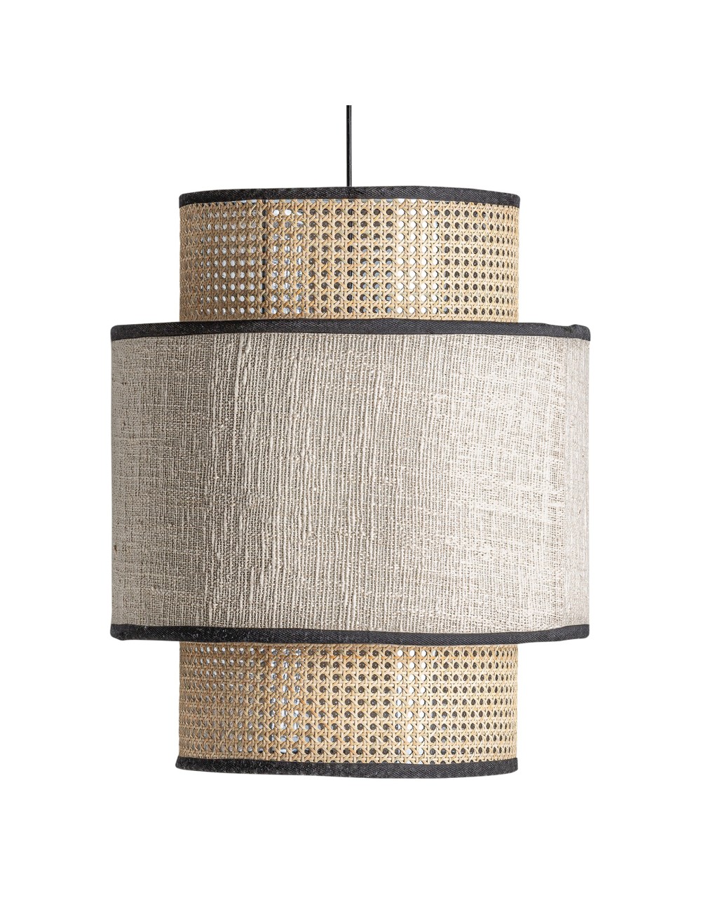Lámpara de colgar glesse, en color blanco/marrón, de estilo boho. Fabricado en ratán, combinado con algodón y hierro.