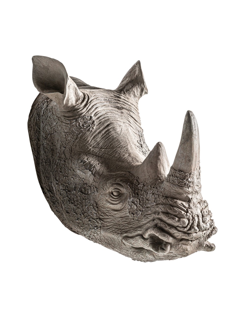 Busto rinoceronte, en color gris envejecido, de estilo nórdico. Fabricado en resina.