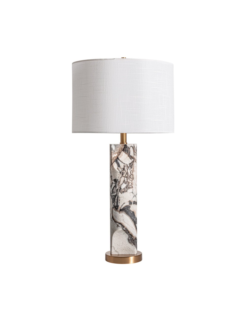 Lámpara de sobremesa, en color blanco/negro, de estilo art deco. Fabricado en hierro, combinado con mármol. Producto desmontable.