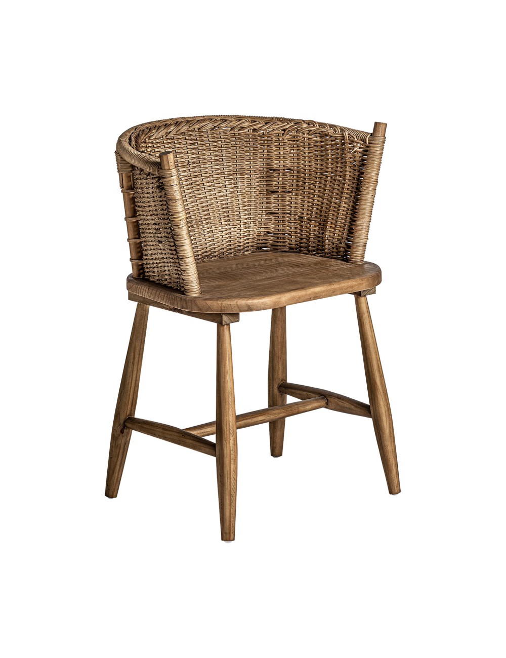 Silla rectangular glassue, en color marrón/beige, de estilo boho. Fabricado en ratán, combinado con madera de caucho y poliéster.