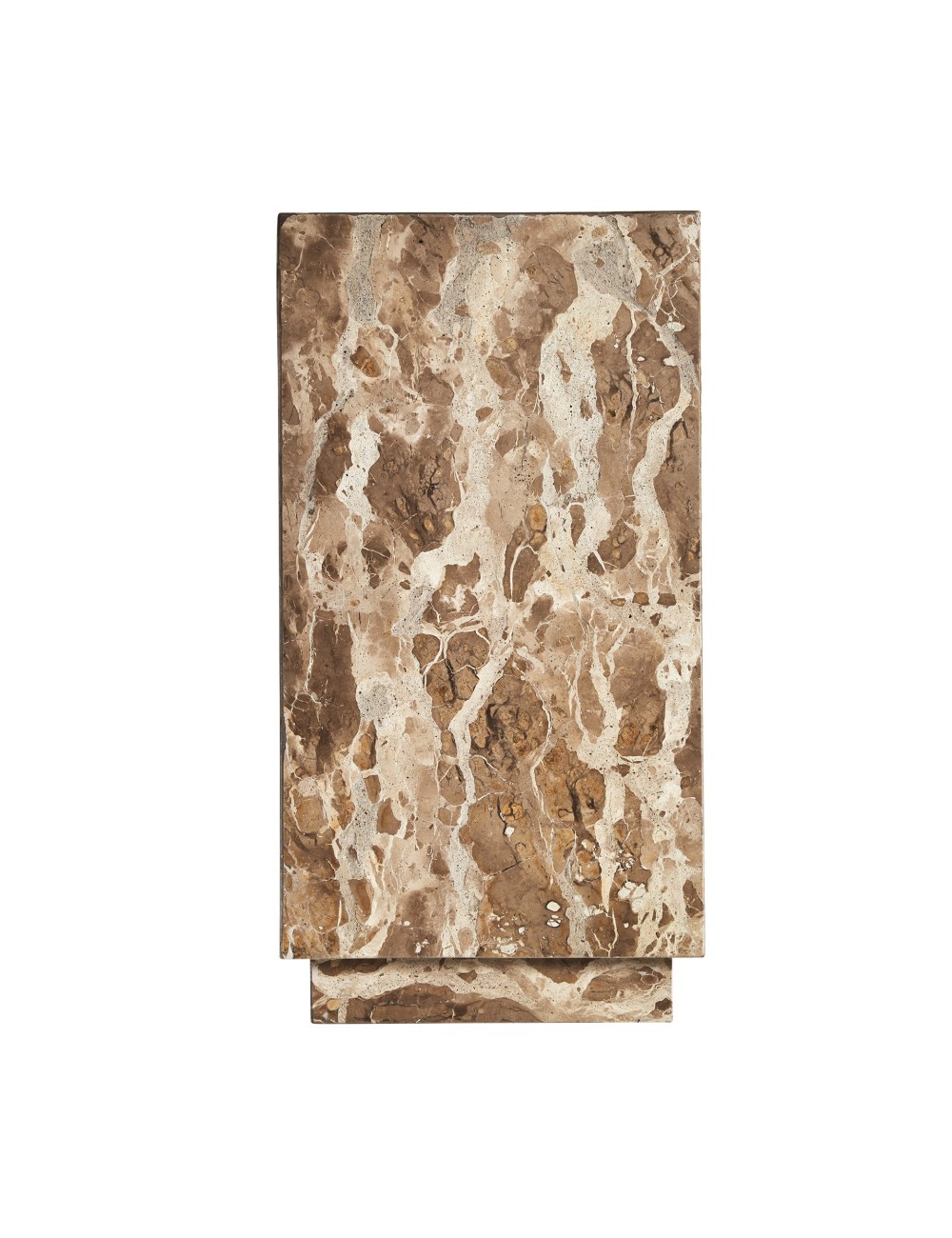 Mesa auxiliar grov, en color beige, de estilo art deco. Fabricado en mármol. |