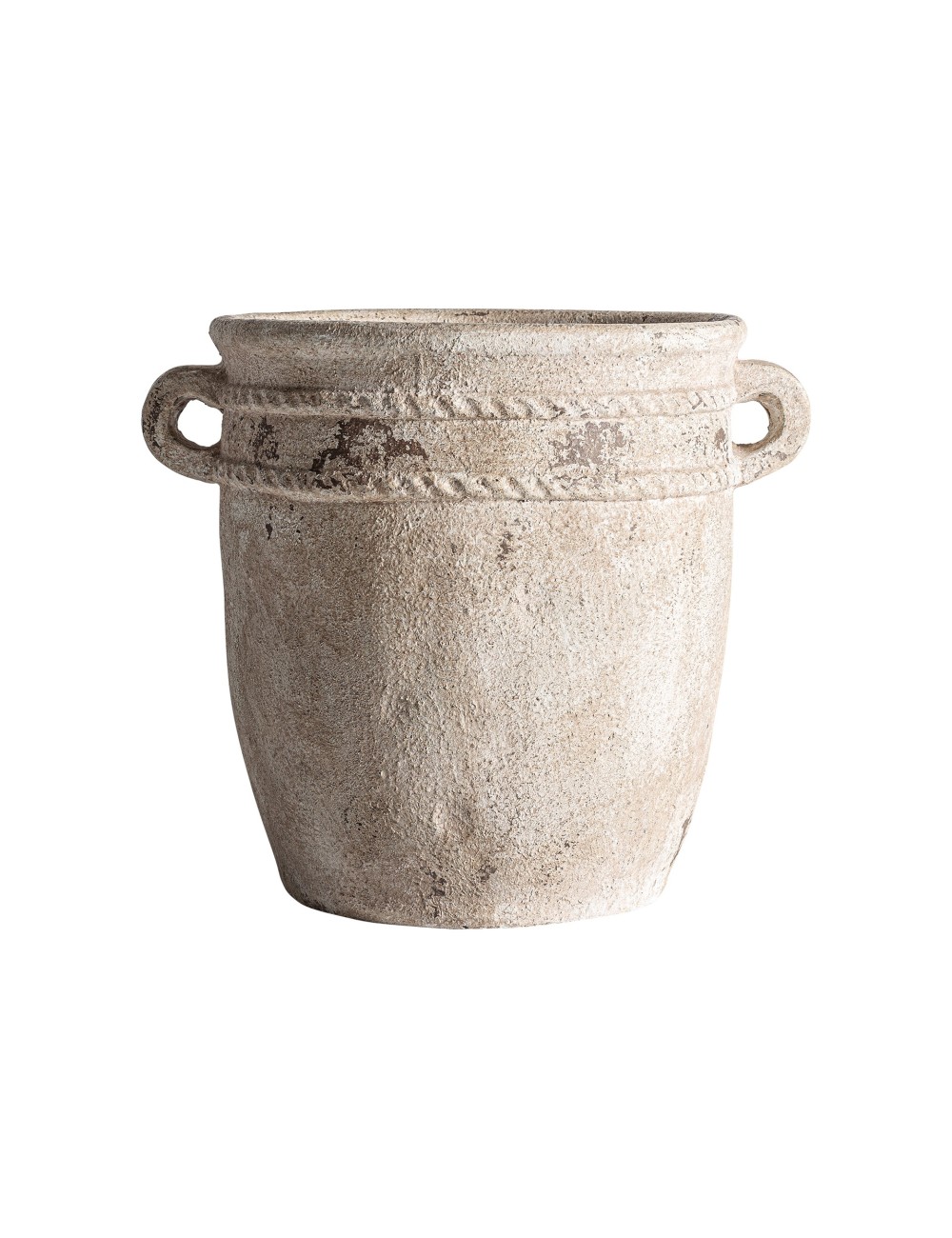 Ánfora zaira, en color blanco roto envejecido, de estilo provenzal. Fabricado en resina.