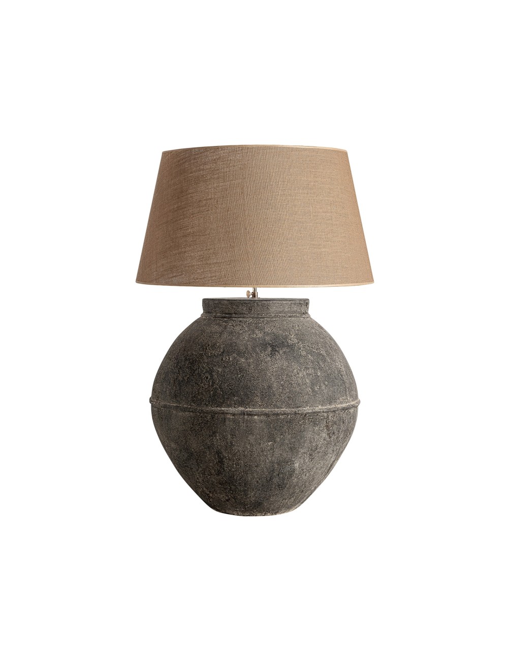Lámpara de sobremesa. Fabricado en terracota, combinado con yute.