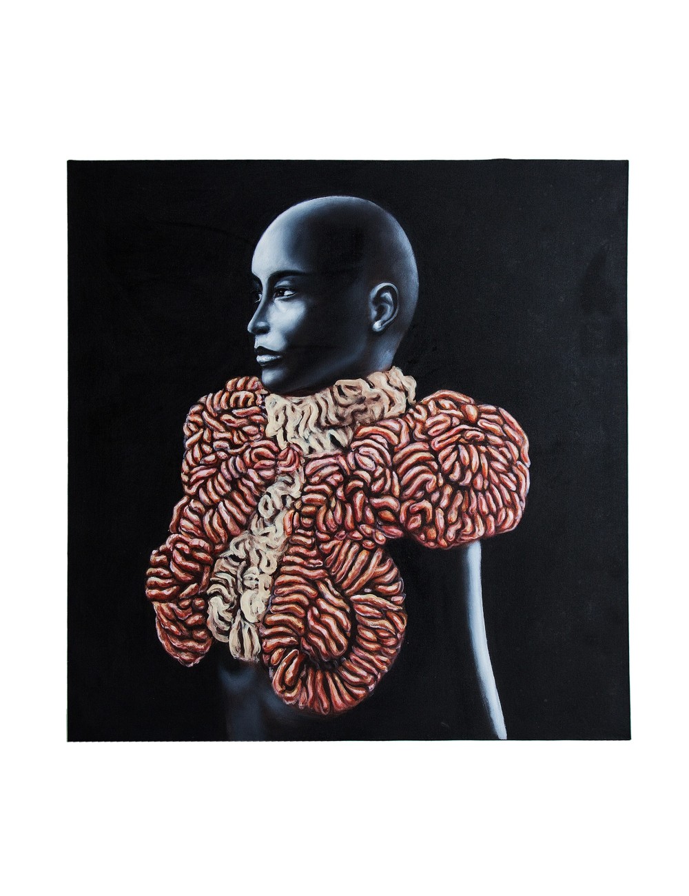 Lienzo ilea, en color negro/blanco/rojo artesanal, de estilo contemporáneo. Fabricado en lienzo.