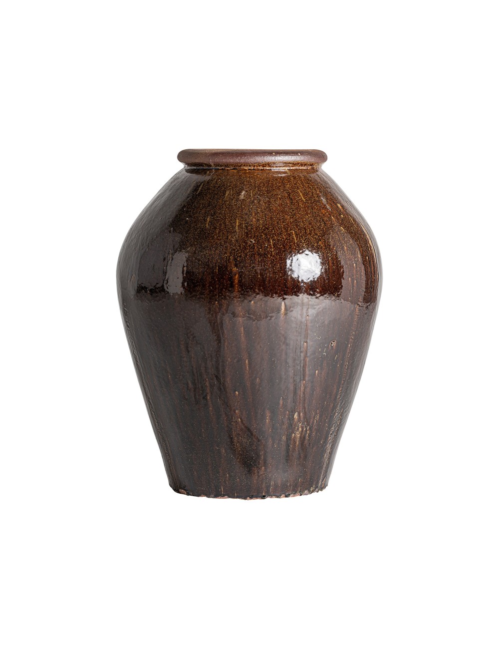 Tinaja cilindrica bukavu, en color marrón envejecido, de estilo vintage. Fabricado en cerámica.