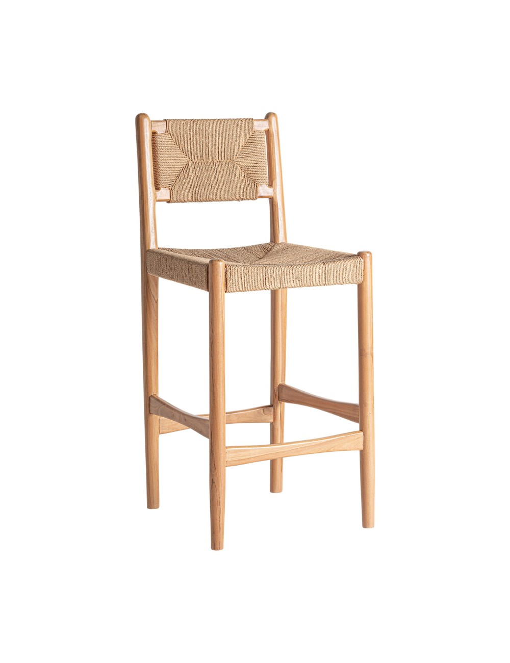 Taburete agia, en color marrón, de estilo contemporáneo. Fabricado en madera de teka, combinado con cáñamo.