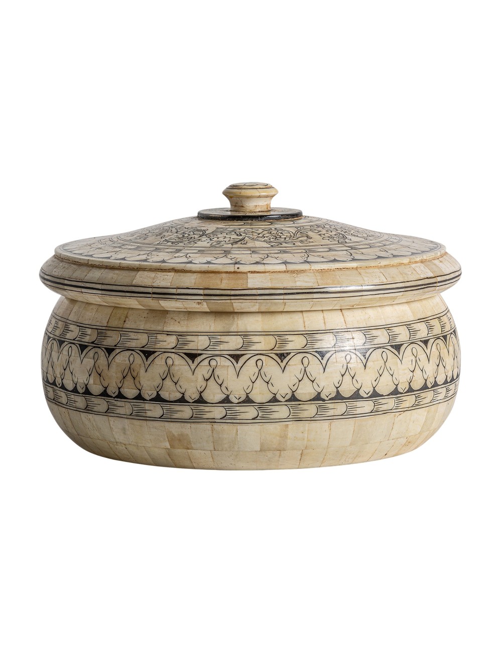 Caja oval neal, en color beige, de estilo art deco. Fabricado en resina.