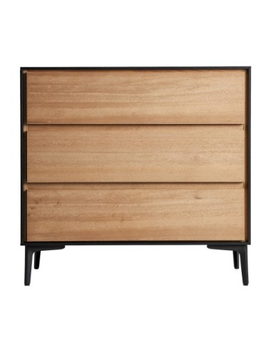 Cómoda cuadrada brussa, en color negro/natural, de estilo contemporáneo. Fabricado en madera dm, combinado con hierro. Producto desmontable.