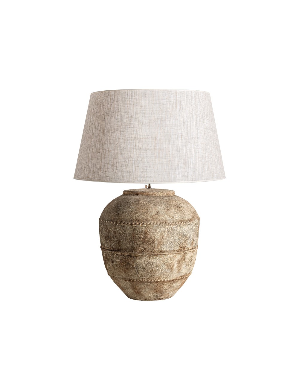 Lámpara de sobremesa. Fabricado en terracota, combinado con lino.