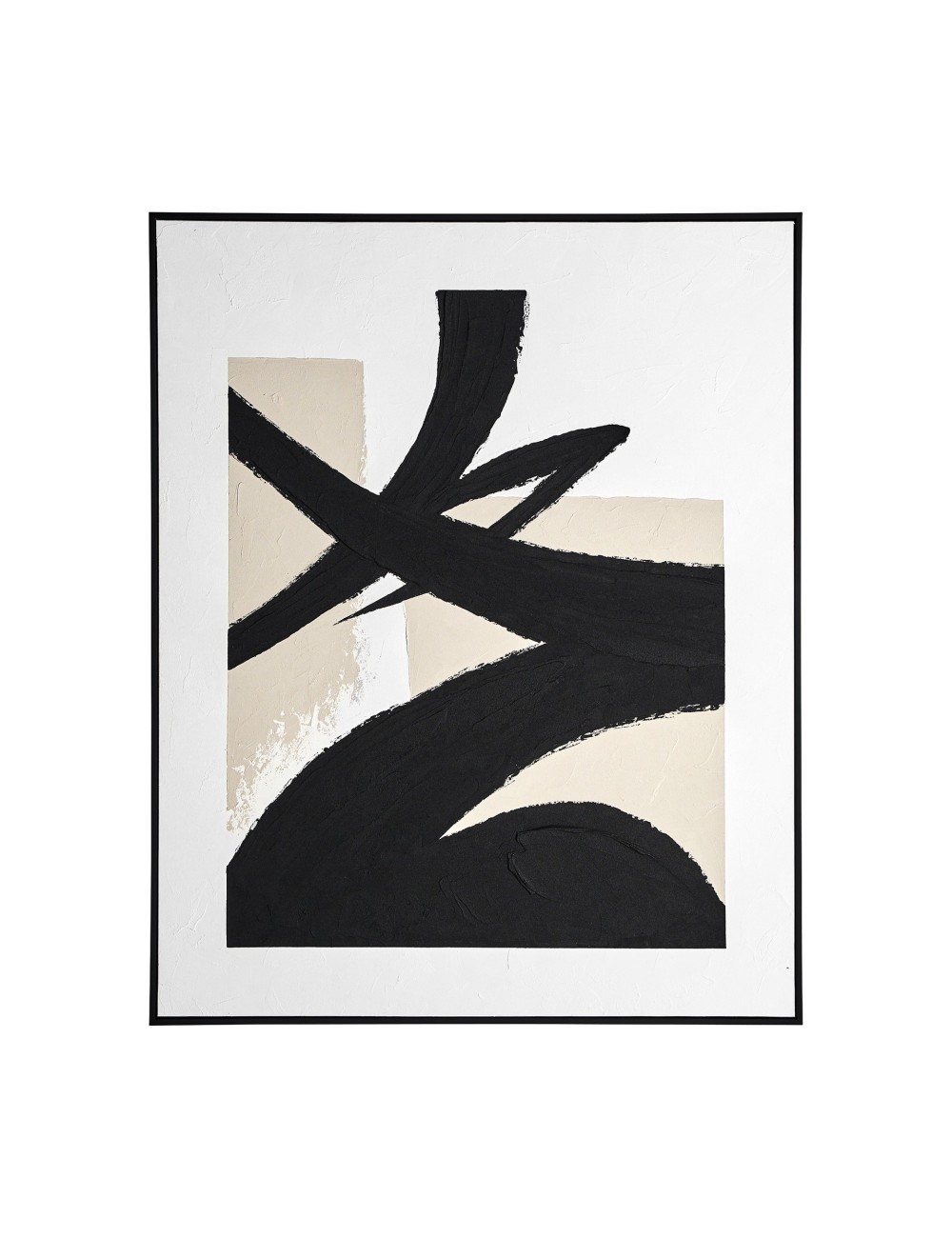 Cuadro uziel, en color negro/blanco al óleo, de estilo contemporáneo. Fabricado en lienzo, combinado con madera de pino.