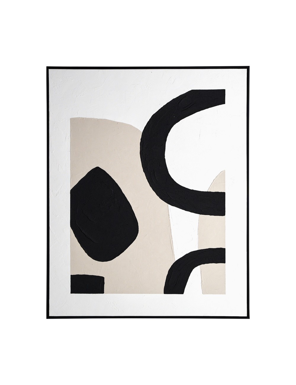 Cuadro uziel, en color blanco/negro, de estilo contemporáneo. Fabricado en lienzo, combinado con madera de pino.
