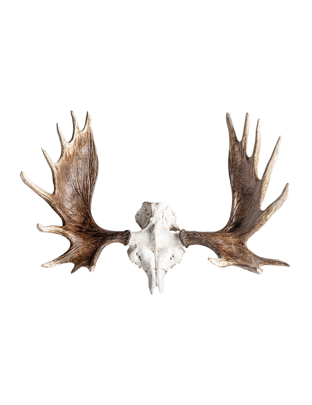 Busto cuerno ciervo, en color marrón/blanco, de estilo nórdico. Fabricado en resina. Producto desmontable.