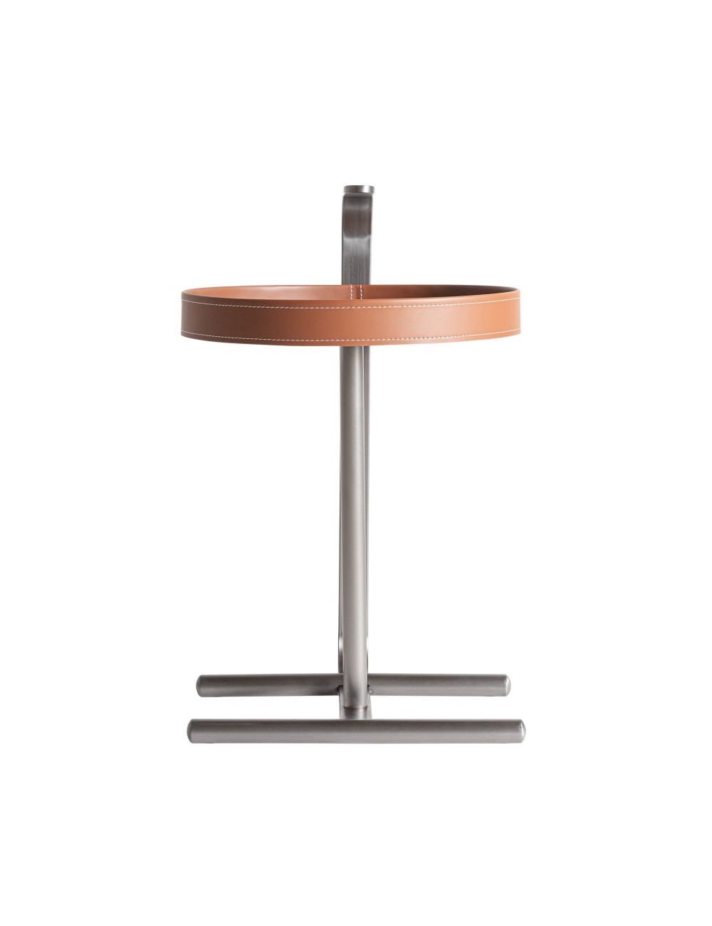 Mesa auxiliar geisingen, en color marrón/plata, de estilo art deco. Fabricado en acero inoxidable, combinado con polipiel. |