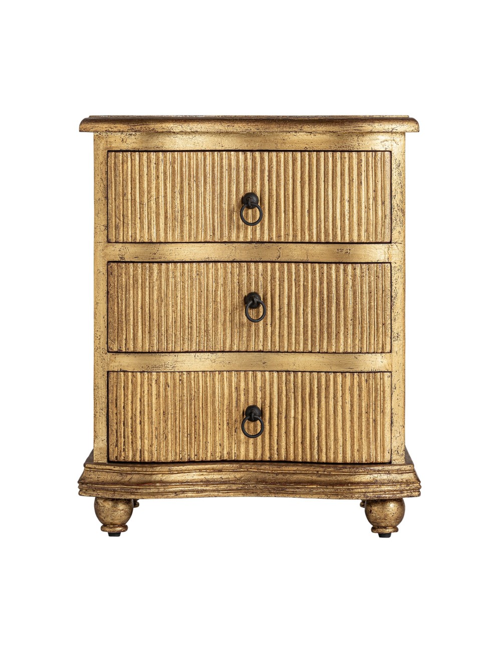 Mesita de noche vernon, en color oro, de estilo clásico. Fabricado en madera de mango, combinado con hierro. |