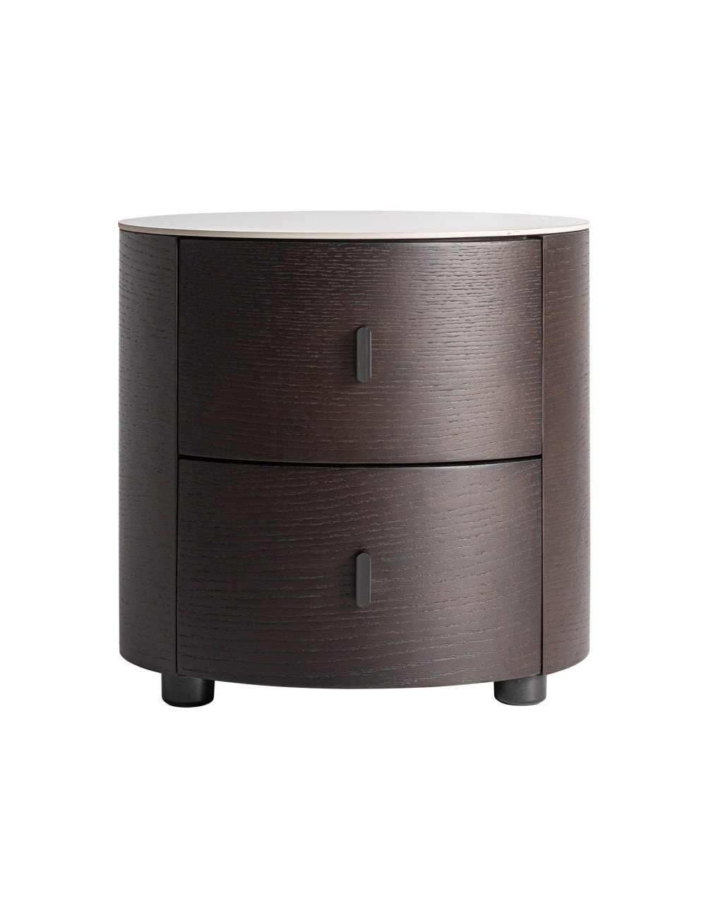 Mesita de noche renchen, en color marrón, de estilo art deco. Fabricado en madera contrachapada, combinado con piedra sinterizada.