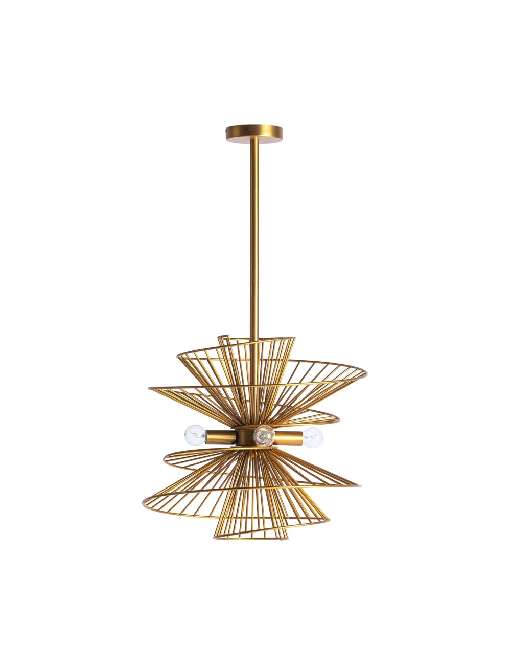 Lámpara de colgar stowe, en color oro, de estilo art deco. Fabricado en hierro. Producto desmontable. | Lámpara de colgar, en color oro, de estilo art deco. Fabricado en hierro, combinado con madera de mango. | Lámpara de colgar, en color marrón, de estilo boho. Fabricado en ratán. | Lámpara de colgar, en color beige, de estilo boho. Fabricado en bambú, combinado con metal. |