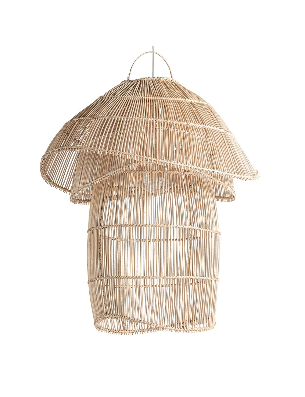 Lámpara de colgar, en color marrón, de estilo boho. Fabricado en ratán.