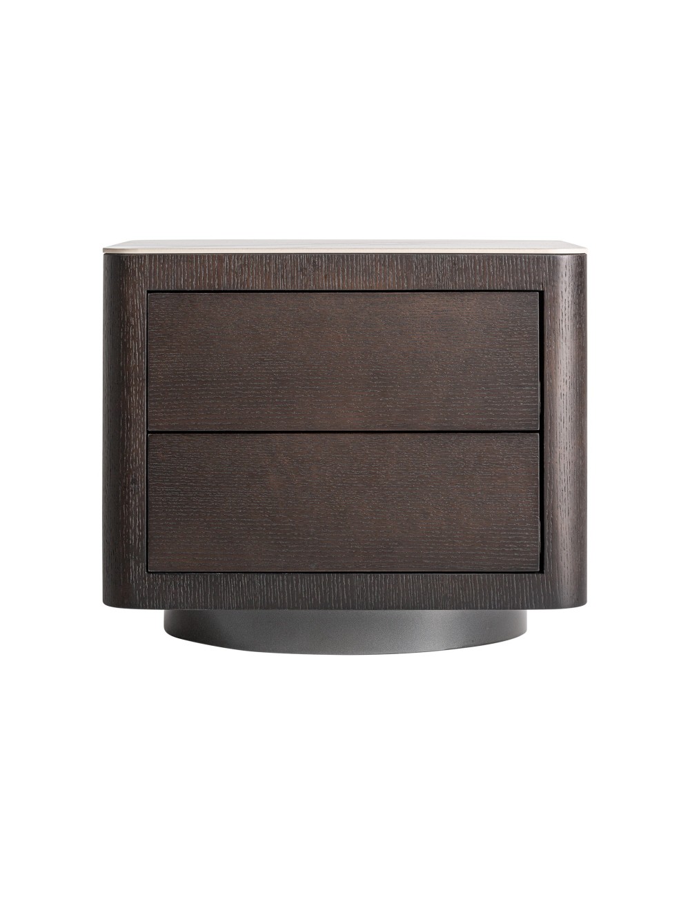 Mesita de noche wholen, en color marrón, de estilo art deco. Fabricado en madera dm, combinado con chapa de roble y piedra sinterizada. |
