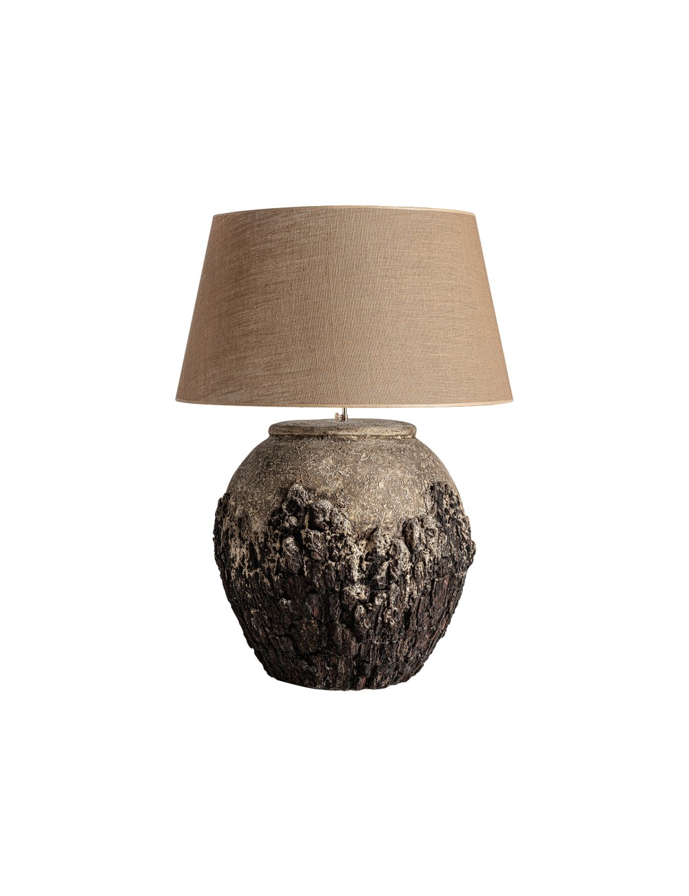 Lámpara de sobremesa, en color tonos en marrón envejecido, de estilo vintage. Fabricado en cerámica, combinado con yute. | Lámpara de colgar, en color oro, de estilo art deco. Fabricado en hierro, combinado con madera de mango. | Lámpara de colgar, en color marrón, de estilo boho. Fabricado en ratán. | Lámpara de colgar, en color beige, de estilo boho. Fabricado en bambú, combinado con metal. |