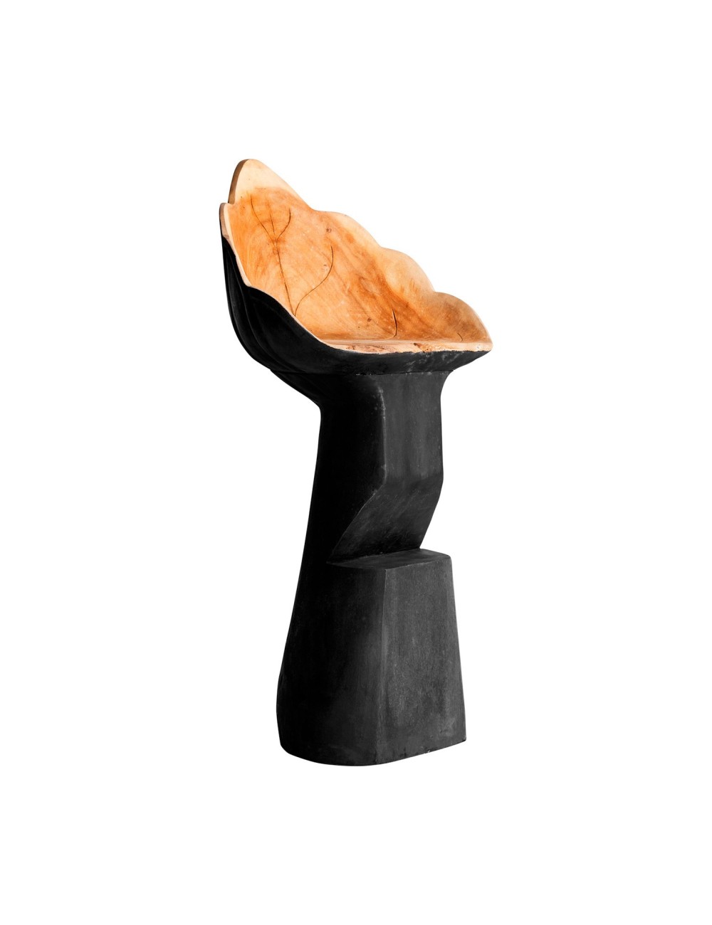 Taburete hoja, en color negro/natural envejecido, de estilo étnico. Fabricado en madera suar.