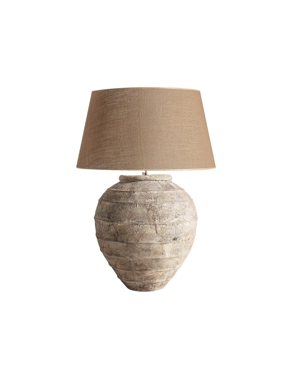 Lámpara de sobremesa, en color beige, de estilo provenzal. Fabricado en cerámica, combinado con yute. | Lámpara de colgar, en color marrón, de estilo boho. Fabricado en ratán, combinado con metal. | Lámpara de colgar stowe, en color oro, de estilo art deco. Fabricado en hierro. Producto desmontable. | Lámpara de pie. Fabricado en latón, combinado con mármol. |