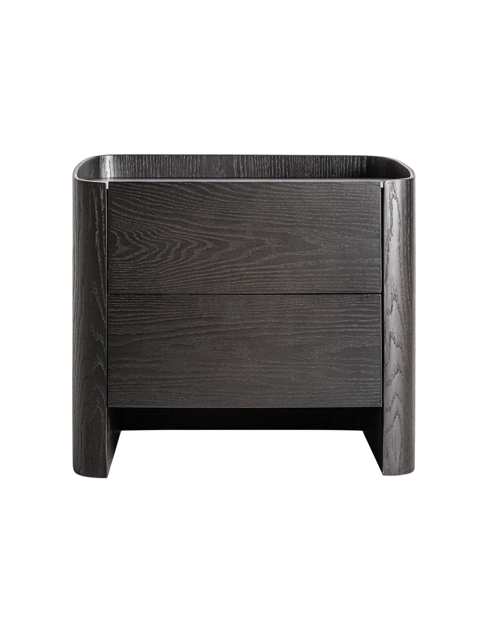 Mesita de noche wolfach, en color negra, de estilo art deco. Fabricado en madera contrachapada, combinado con chapa de roble.