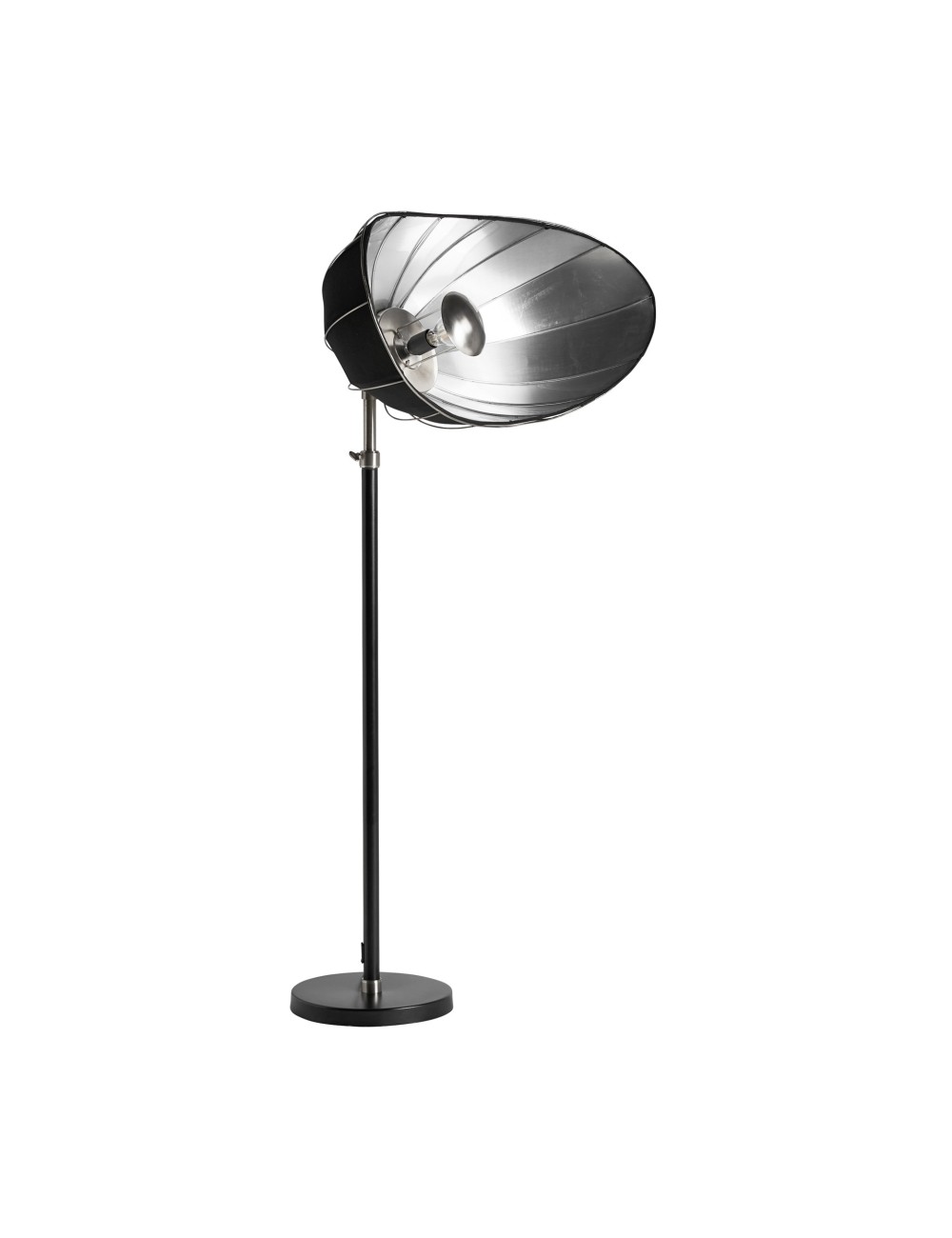 Lámpara de pie alia, en color negro/plata, de estilo art deco. Fabricado en hierro. Producto elevable.