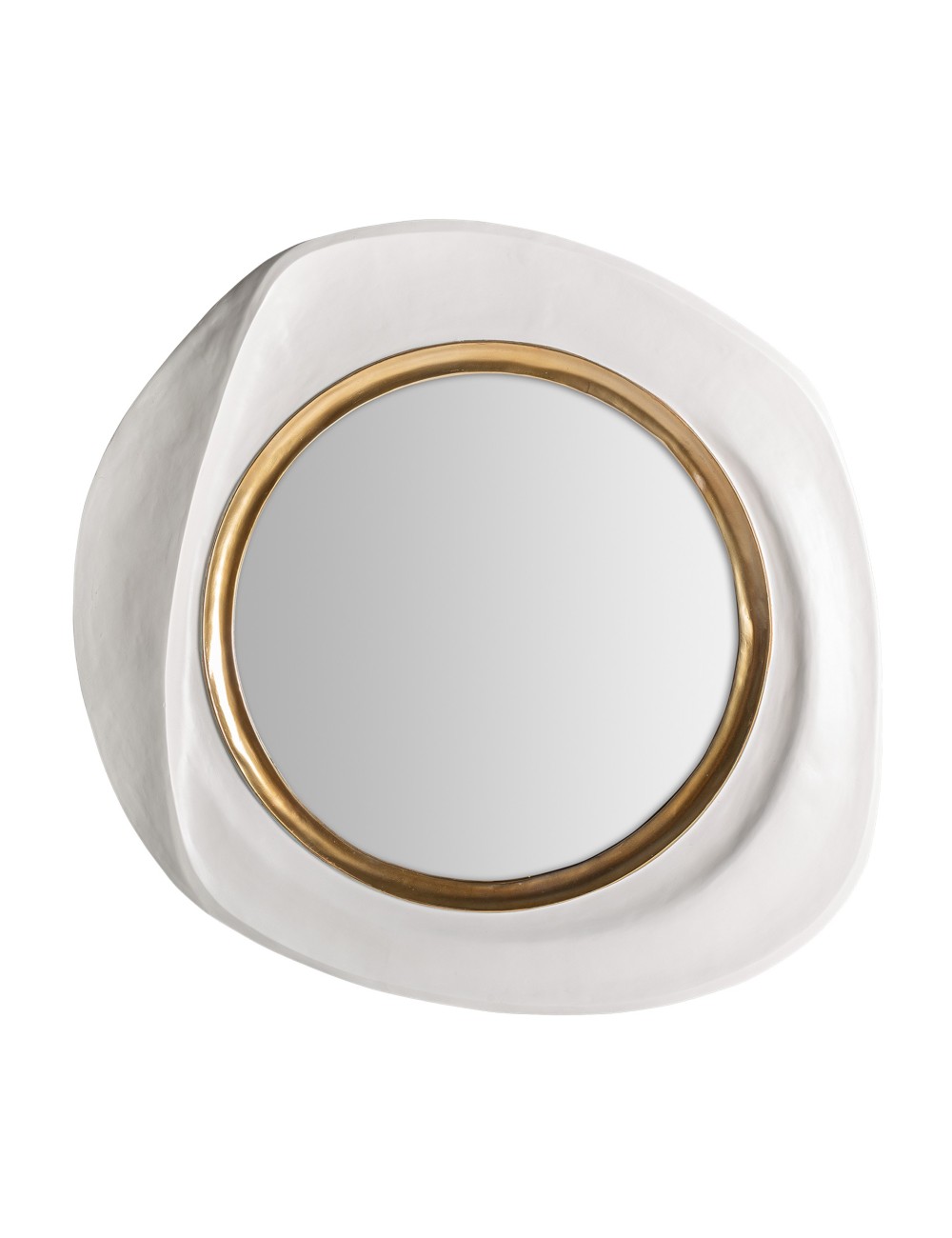 Espejo Riley, en color Blanco/Oro, de Estilo Contemporáneo.Fabricado en Resina, Combinado Con Cristal.