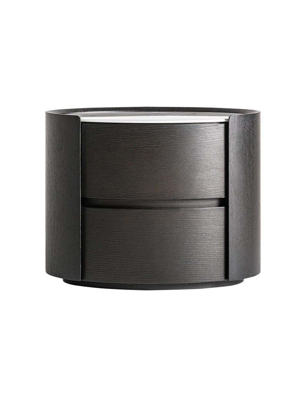 Mesita de noche zofingen, en color negra, de estilo art deco. Fabricado en madera dm, combinado con piedra sinterizada. |
