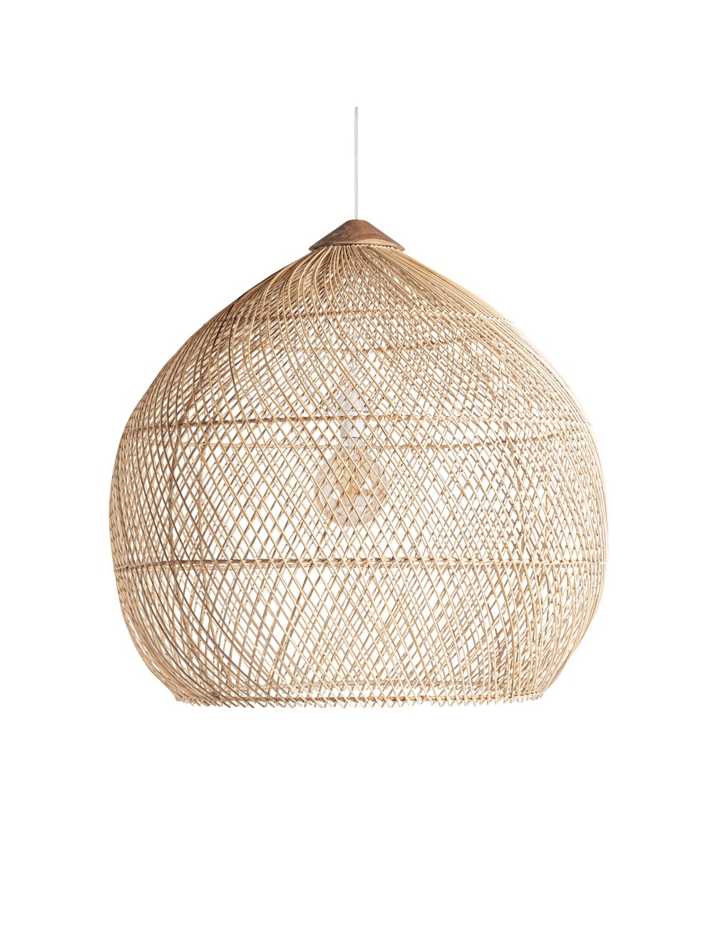 Lámpara de colgar, en color marrón, de estilo boho. Fabricado en ratán.