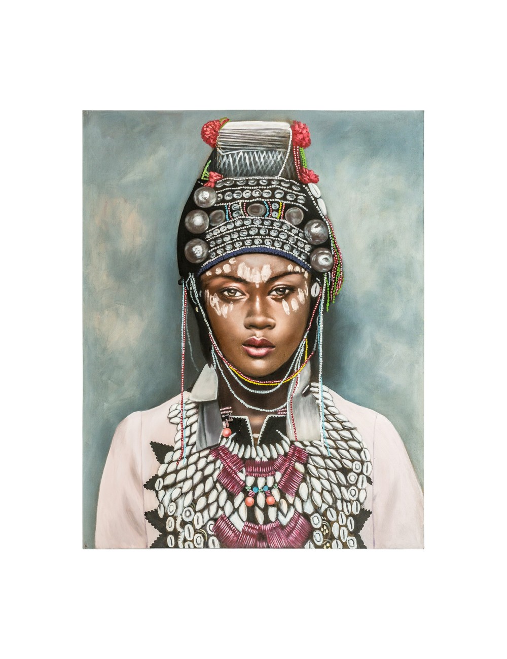 Lienzo akram, en color multicolor artesanal, de estilo étnico. Fabricado en lienzo, combinado con madera de pino.