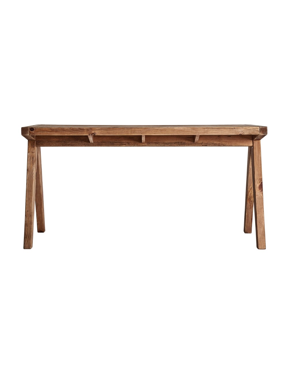 Escritorio crissey, en color marrón, de estilo contemporáneo. Fabricado en madera de pino reciclado. Producto desmontable. |