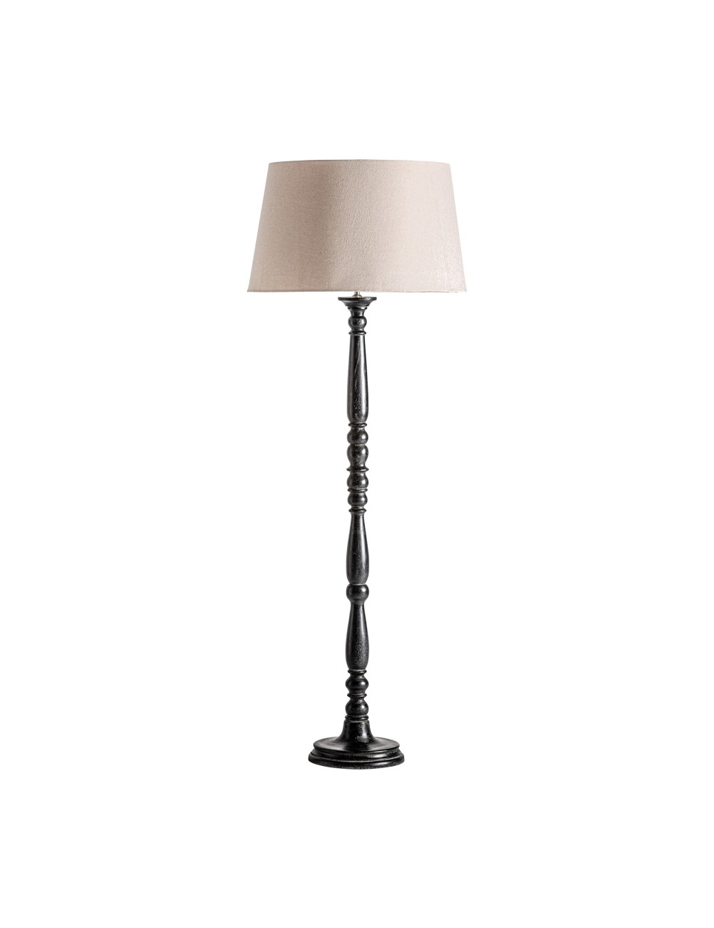 Lámpara de pie, en color blanco/negro, de estilo clásico. Fabricado en madera de mango, combinado con algodón. Producto desmontable.