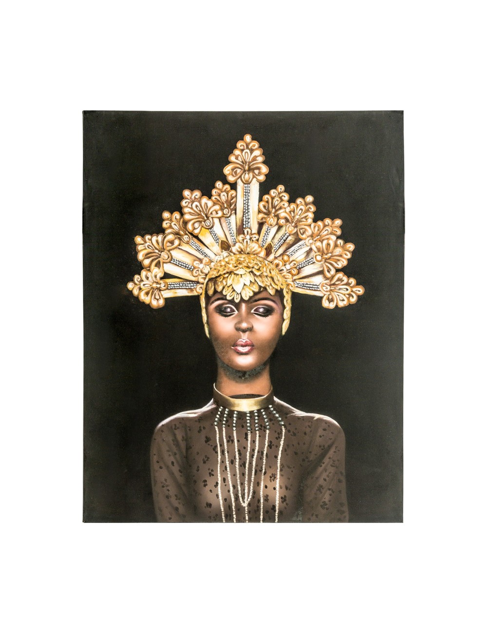 Lienzo niurka, en color negro/oro artesanal, de estilo oriental. Fabricado en lienzo, combinado con madera de pino. Alfombra zalika, en color tonos en marrón, de estilo boho. Fabricado en yute, combinado con algodón. Espejo cotard, en color marrón natural, de estilo nórdico. Fabricado en madera de mango. Figura decorativa, en color crema, de estilo étnico. Fabricado en mármol.