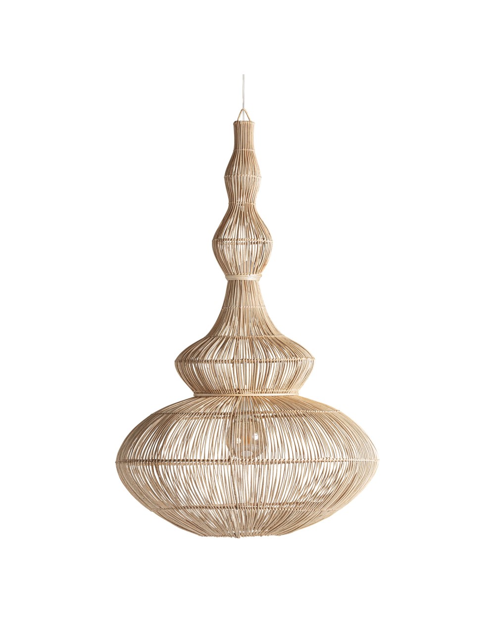 Lámpara de colgar, en color marrón, de estilo boho. Fabricado en ratán.