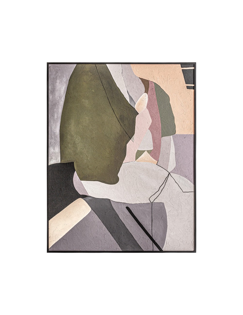 Lienzo balian, en color multicolor artesanal, de estilo contemporáneo. Fabricado en lienzo. | Alfombra rectangular kisai, en color negra teñido, de estilo colonial. Fabricado en yute. | Alfombra nalah, en color tonos en marrón, de estilo boho. Fabricado en yute, combinado con algodón. | Espejo amelfot, en color oro, de estilo art deco. Fabricado en acero. |