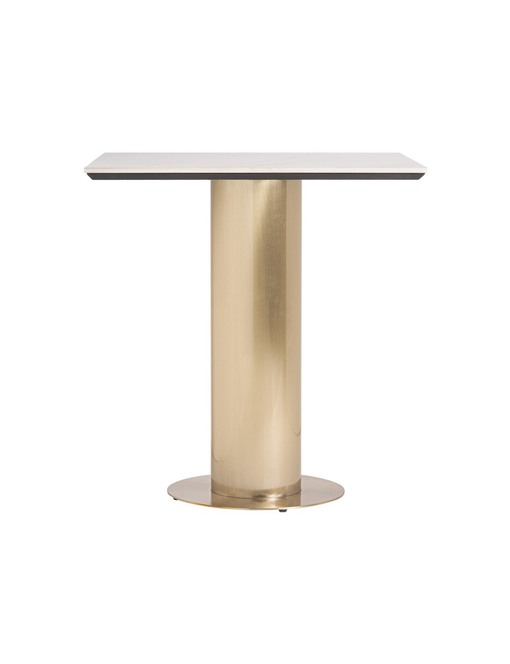 Mesa bar naustdal, en color blanco/oro, de estilo art deco. Fabricado en acero, combinado con mármol sintético. Producto desmontable.