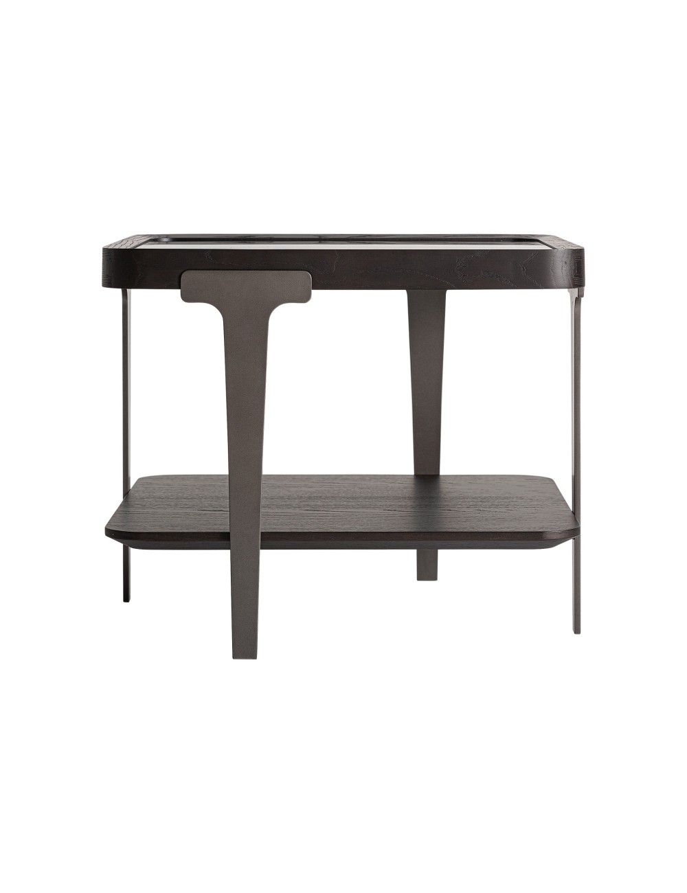 Mesa auxiliar breil, en color negro, de estilo art deco. Fabricado en madera de fresno, combinado con cristal. Producto desmontable.