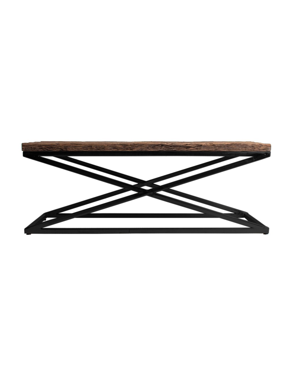 Mesa de centro akron, en color marrón, de estilo industrial. Fabricado en madera de teka, combinado con acero.