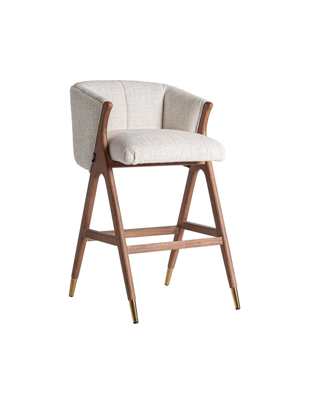 Taburete douze, en color marrón/beige, de estilo contemporáneo. Fabricado en madera de caucho, combinado con acero y terciopelo.