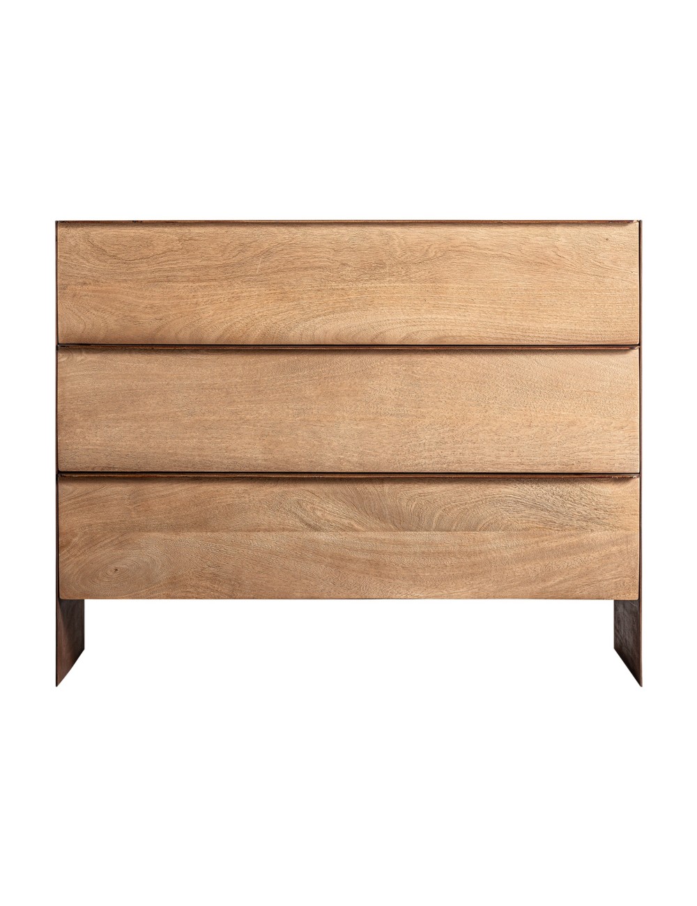 Cómoda killeany, en color marrón, de estilo industrial. Fabricado en madera de mango, combinado con hierro. |